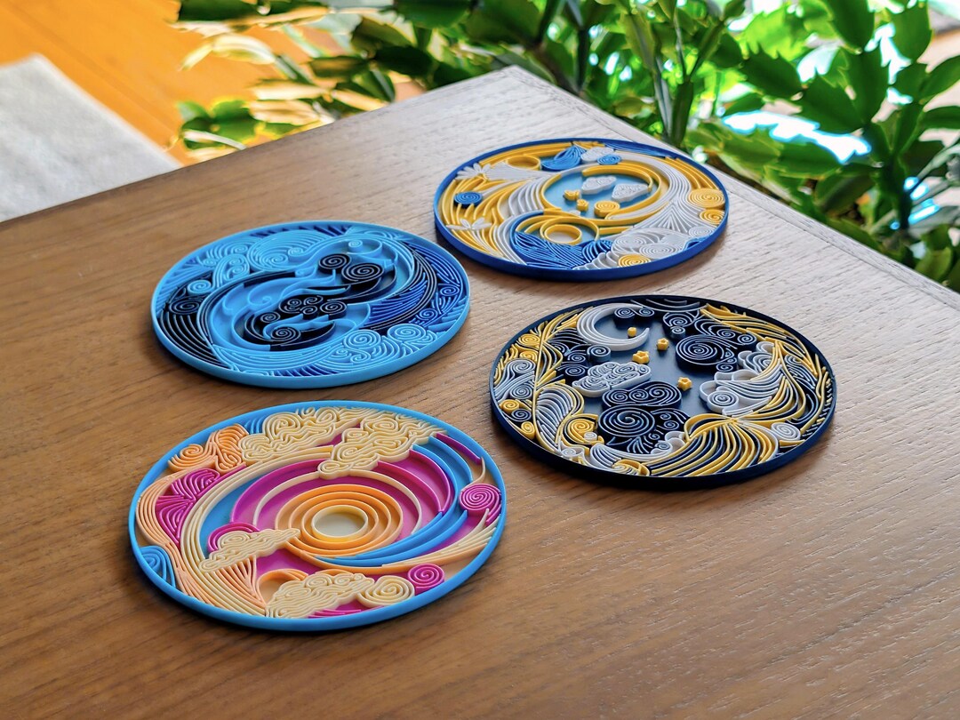 Colorful Seasonal Drink Coaster Set - Spring, Summer, Fall, and Winter ...