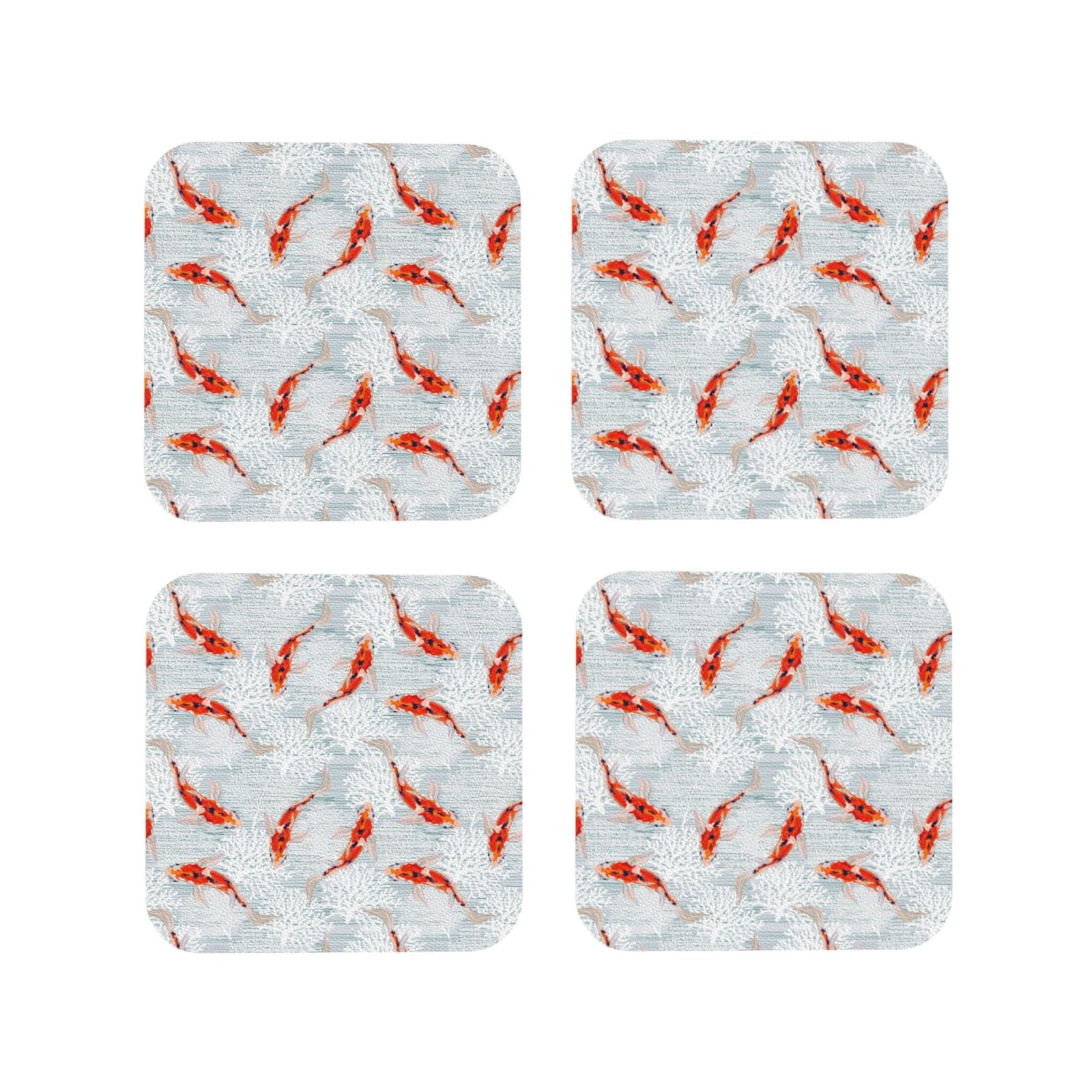 Fuzoiu Koi Fish Corals,Spring Summer Print Leather Coasters Set,Drink ...