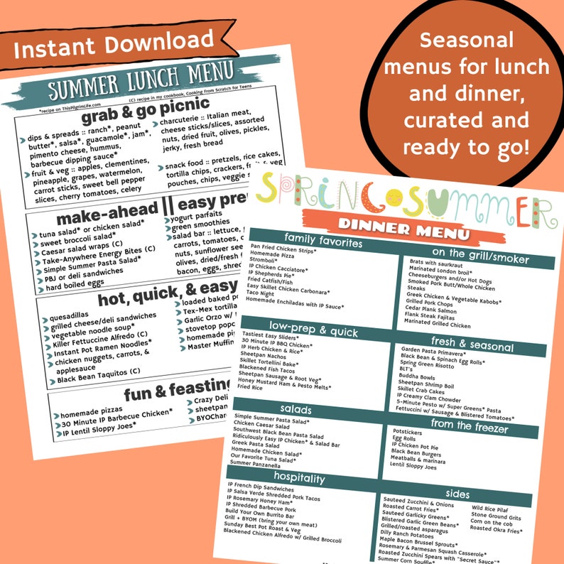 Spring & Summer Lunch and Dinner Menus - Etsy