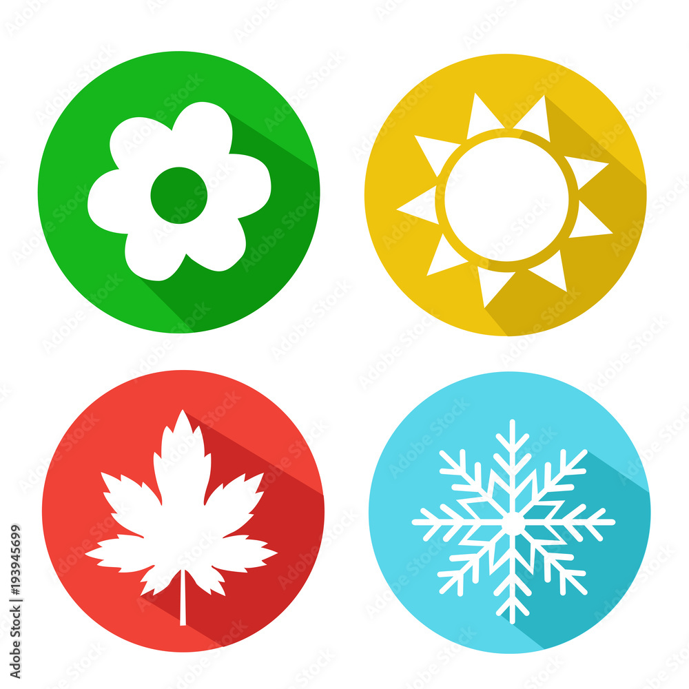 Four seasons vector symbols. Set of four vector icons on colorful ...