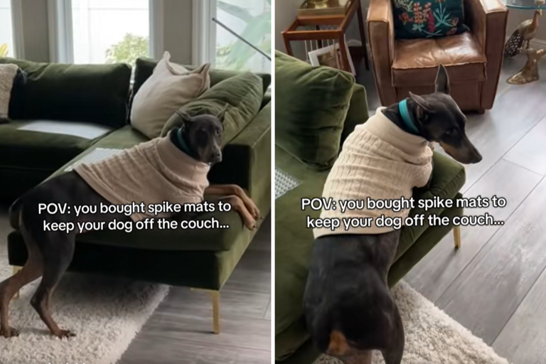 How owner keeps Doberman off couch splits viewers: 'Poor dog'