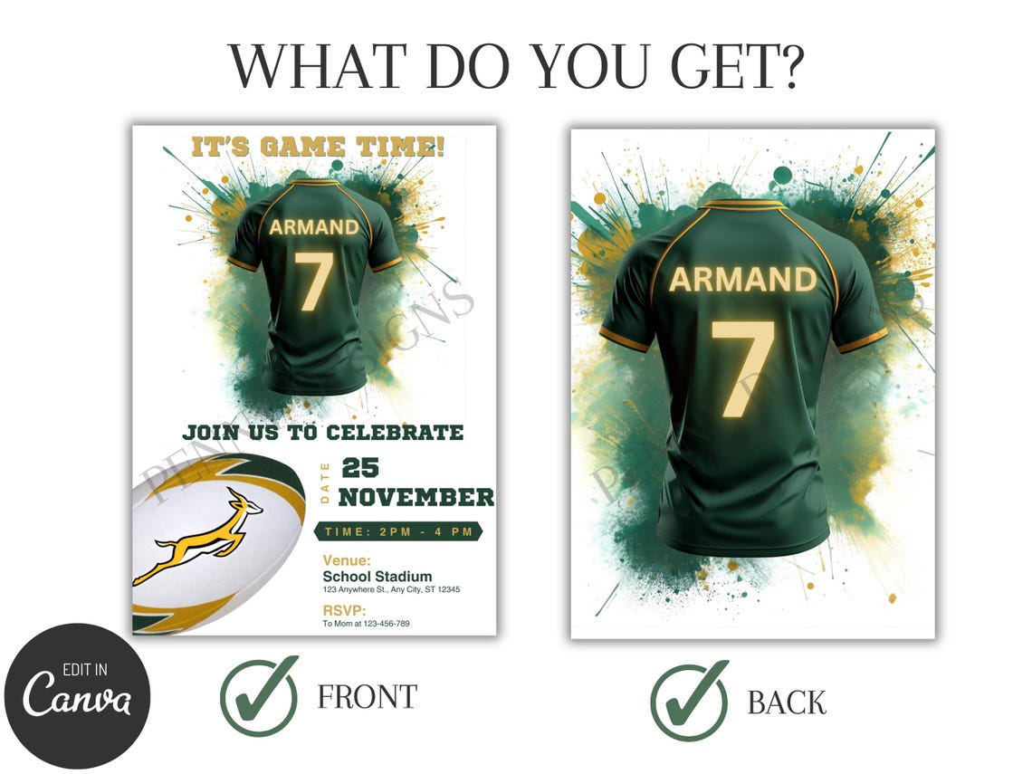Rugby Birthday Invite, Rugby Editable Template, South Africa Rugby ...