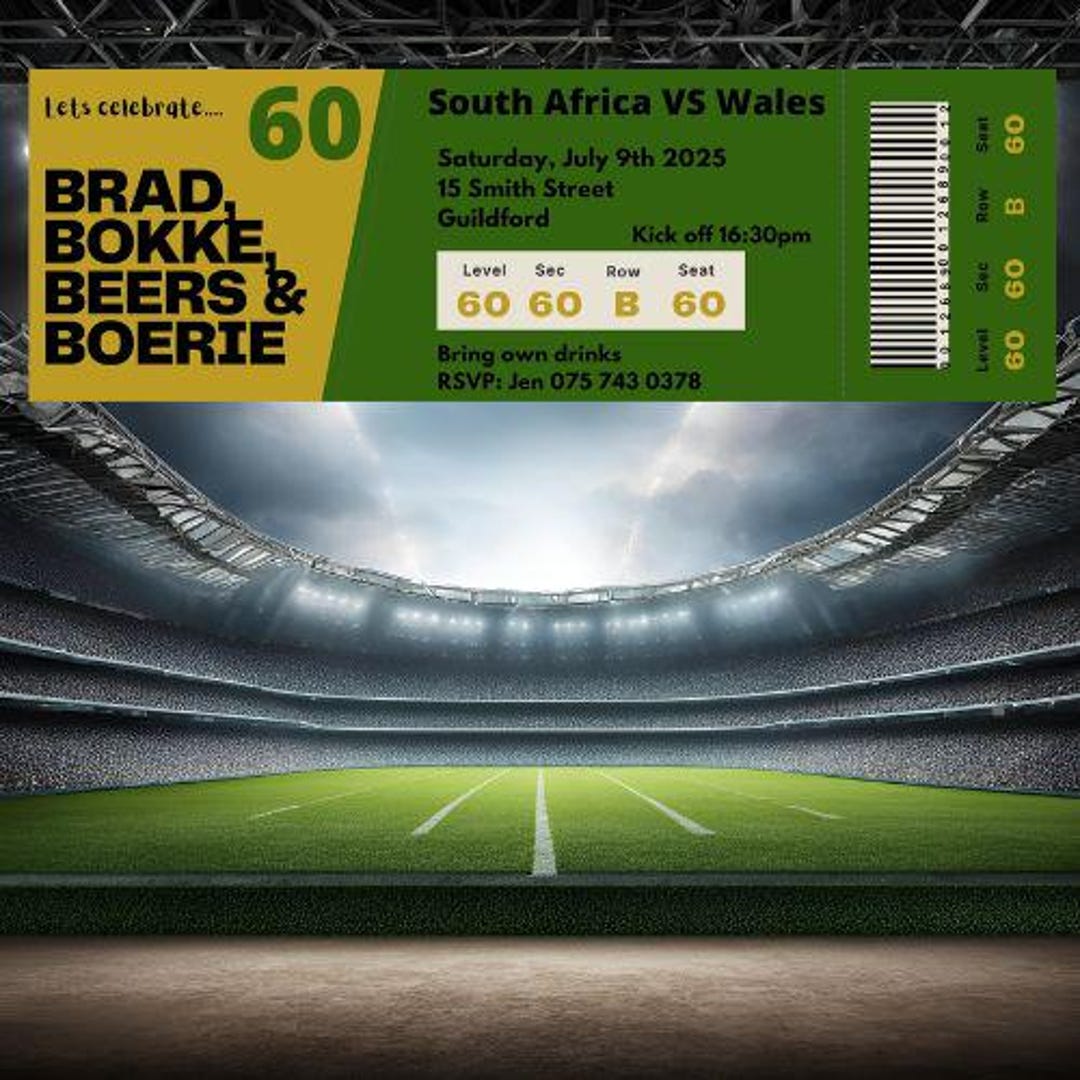 Springbok Rugby Ticket Birthday Invitation | South Africa Rugby Sport ...