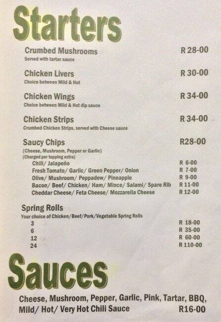 Menu at Nando's Springbok restaurant, Springbok
