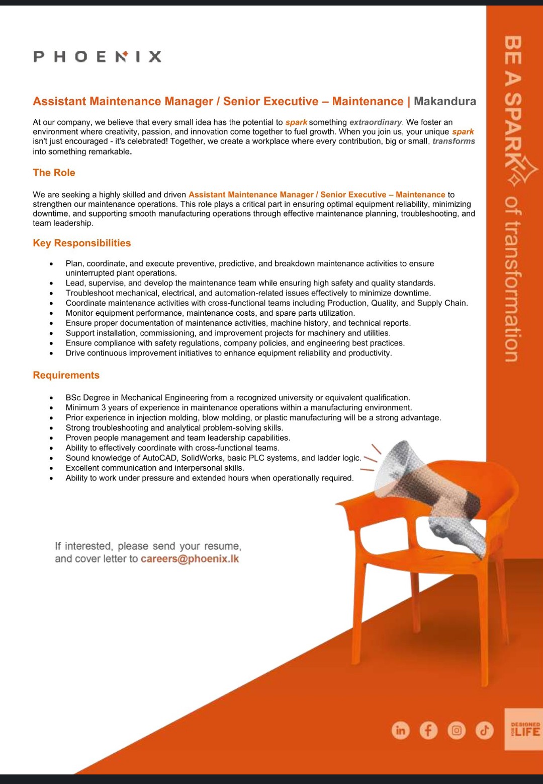 Assistant Maintenance Manager/ Senior Executive - Maintenance ...