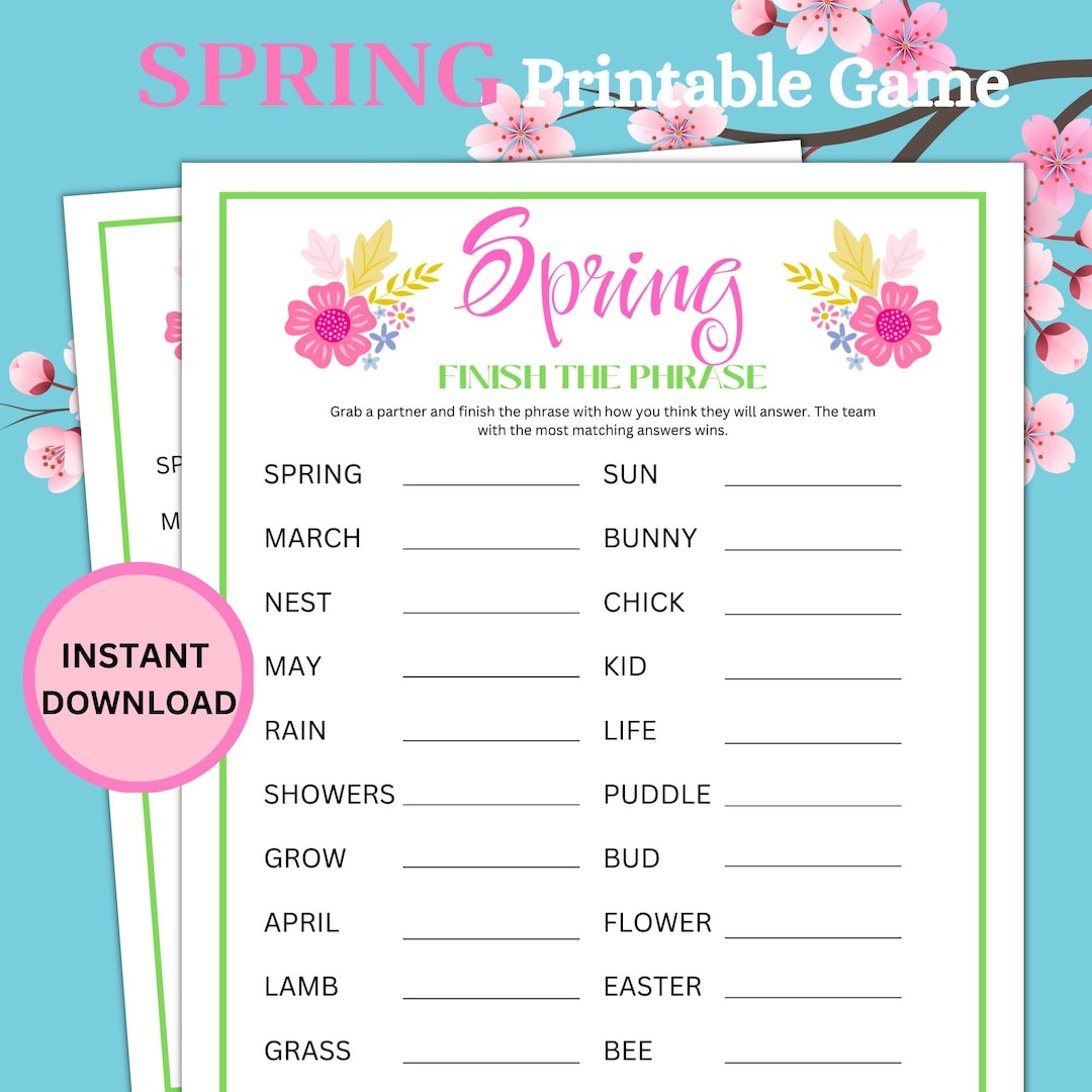 Spring Party Games Printable, Springtime Activities for Adults & Kids ...