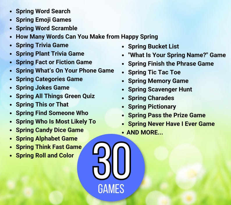 20 Spring Games Bundle, Spring Party Games, Spring Activities, Spring ...
