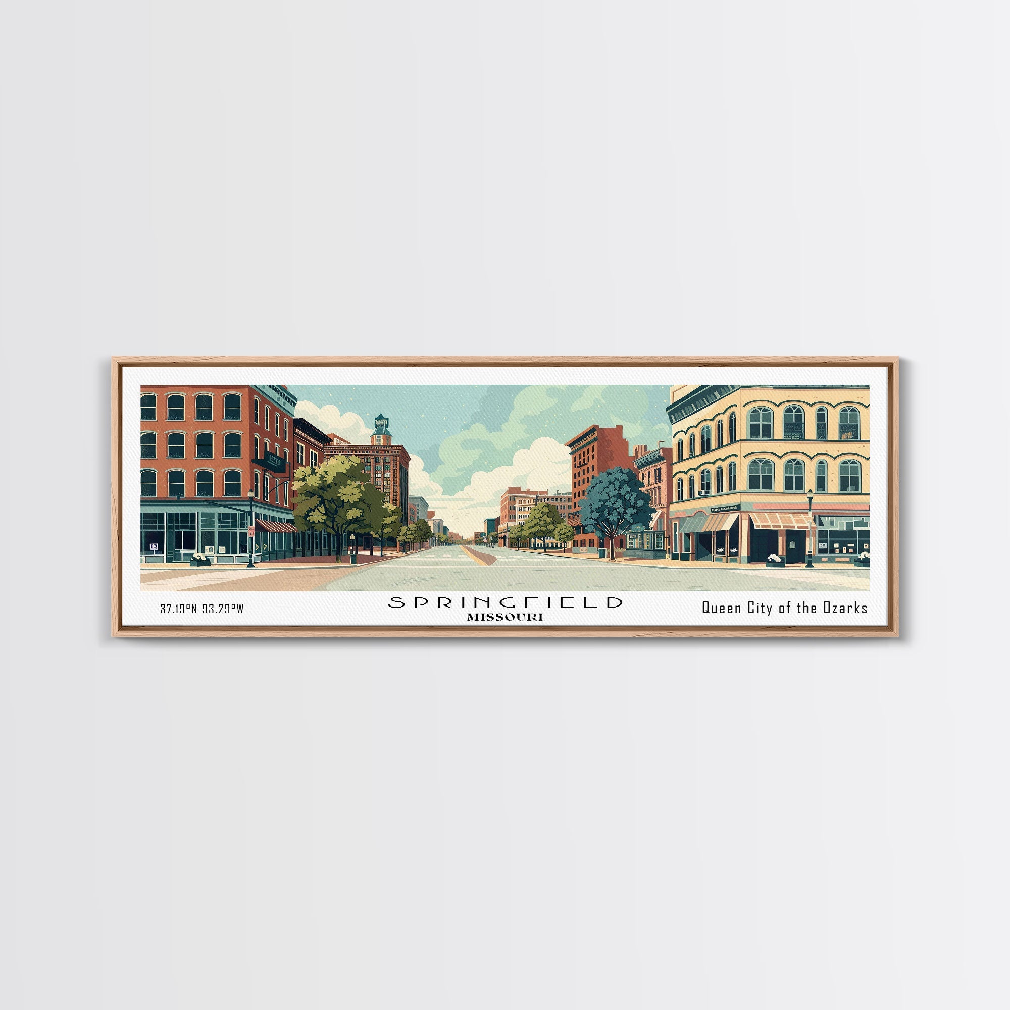 Springfield Illinois Panoramic Art, Mid Century Modern Framed Canvas P