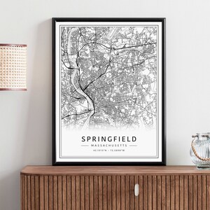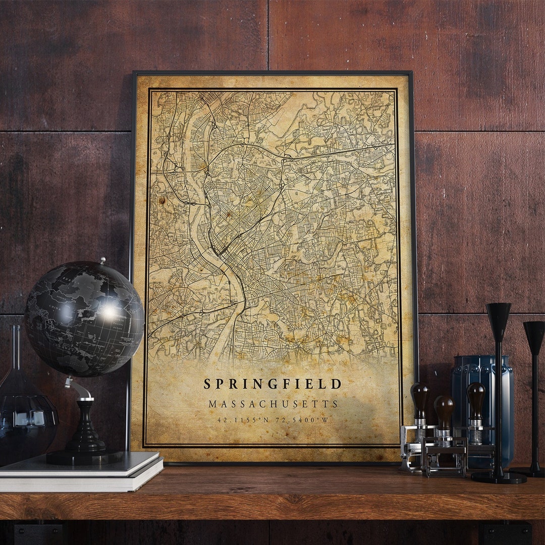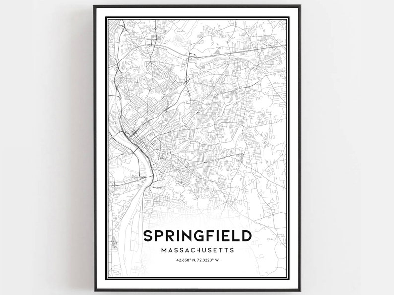 Springfield Map Print Springfield Map Poster Wall Art Ma - Etsy
