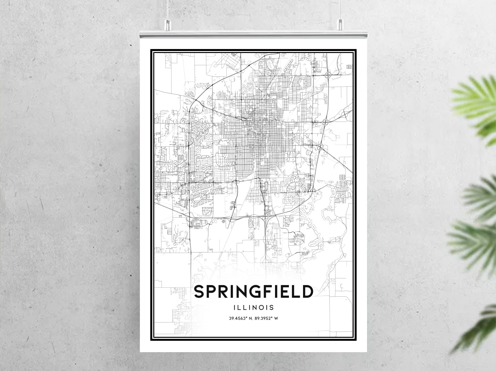 Springfield Map Print, Illinois Poster, USA Wall Art, Sangamon County ...