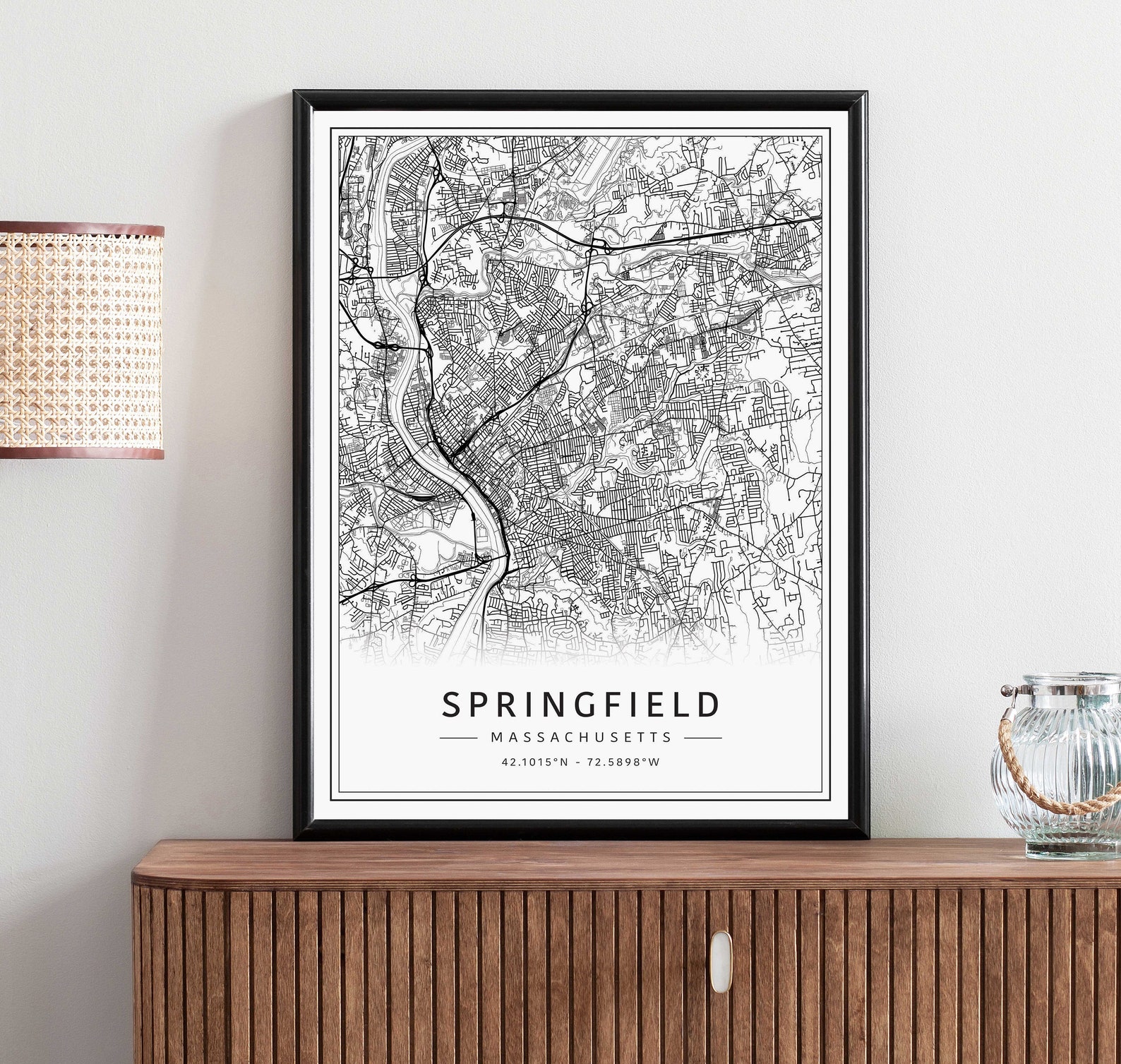 Springfield Massachusetts Map Poster, Modern Home Decor Wall Art Print ...