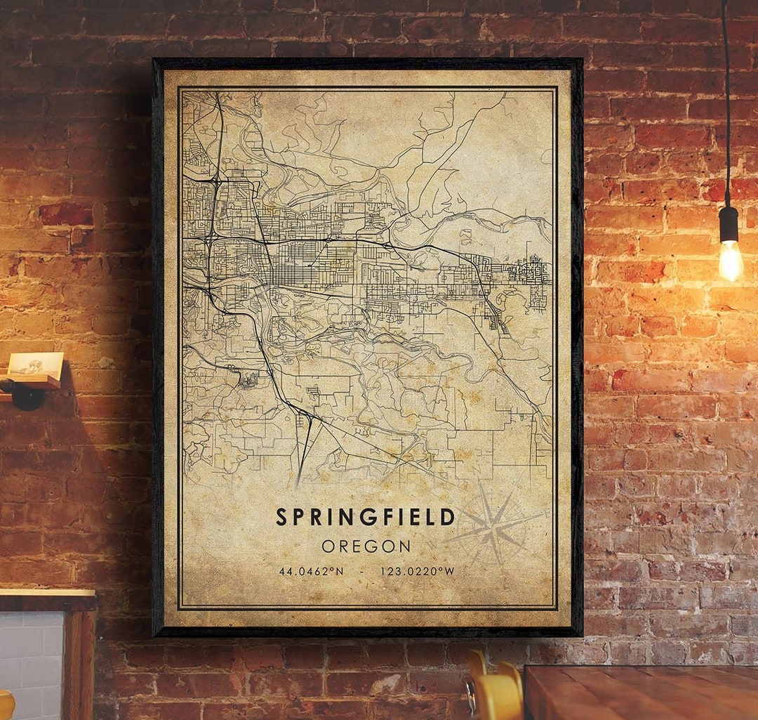 Vintage Springfield Oregon Map Poster, Modern Home Decor Wall Art Print ...