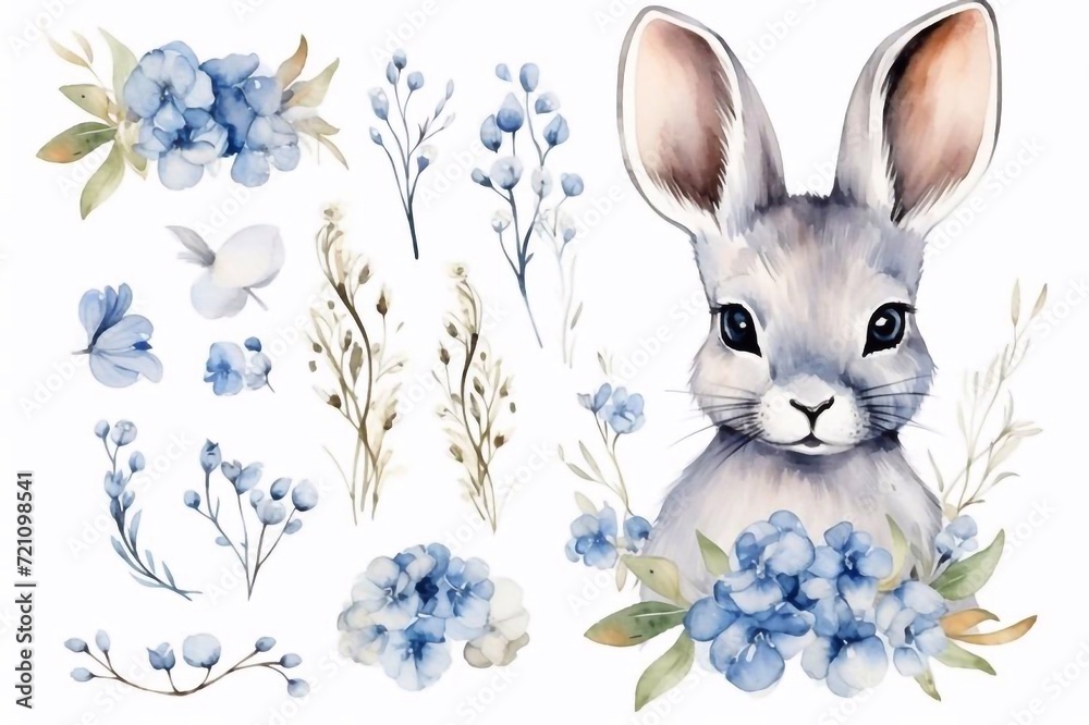 watercolor drawing. set of elements on the theme of Easter, spring ...