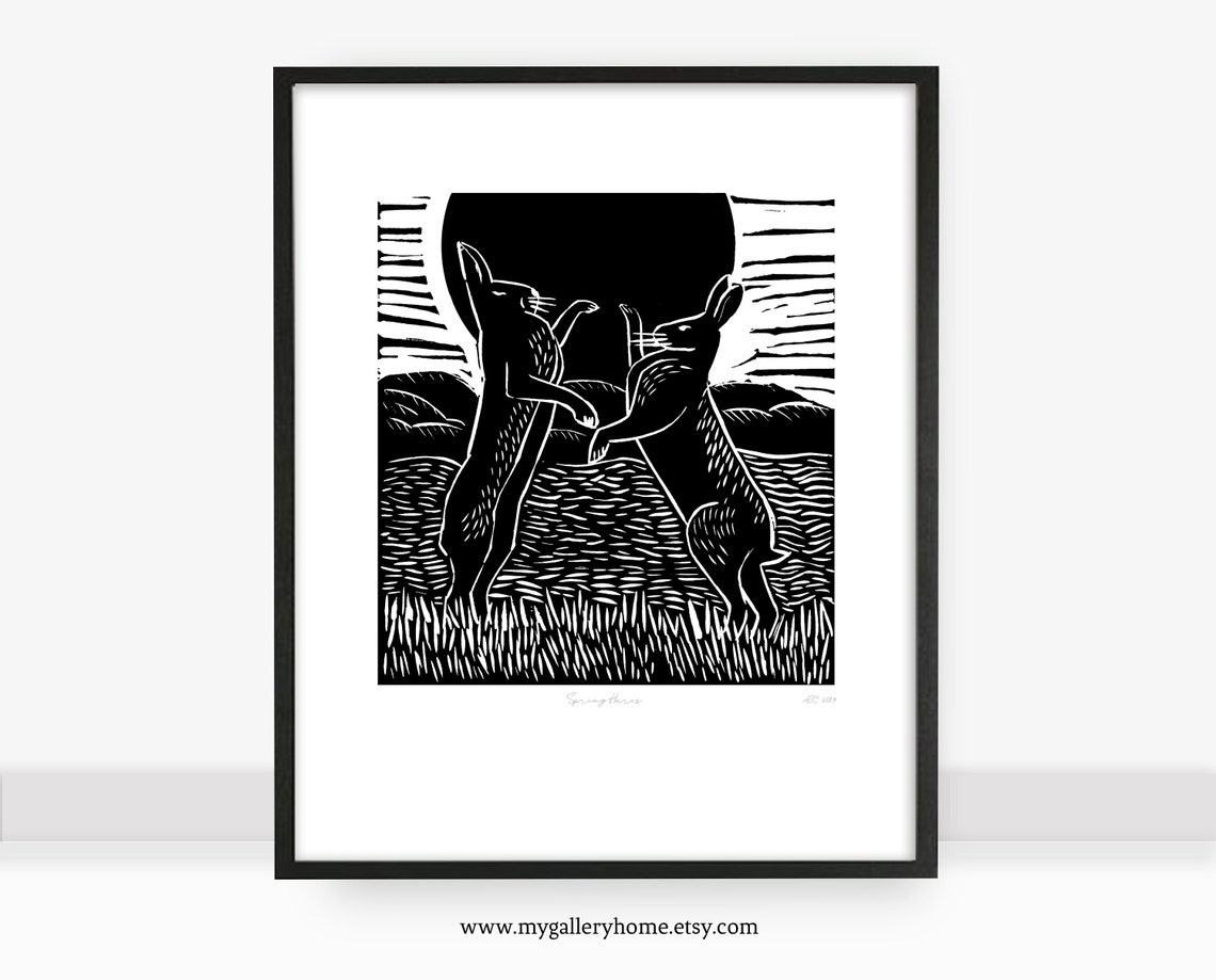 Spring Hares Linocut Art Printable | Various Colours | Modern Wall Art ...
