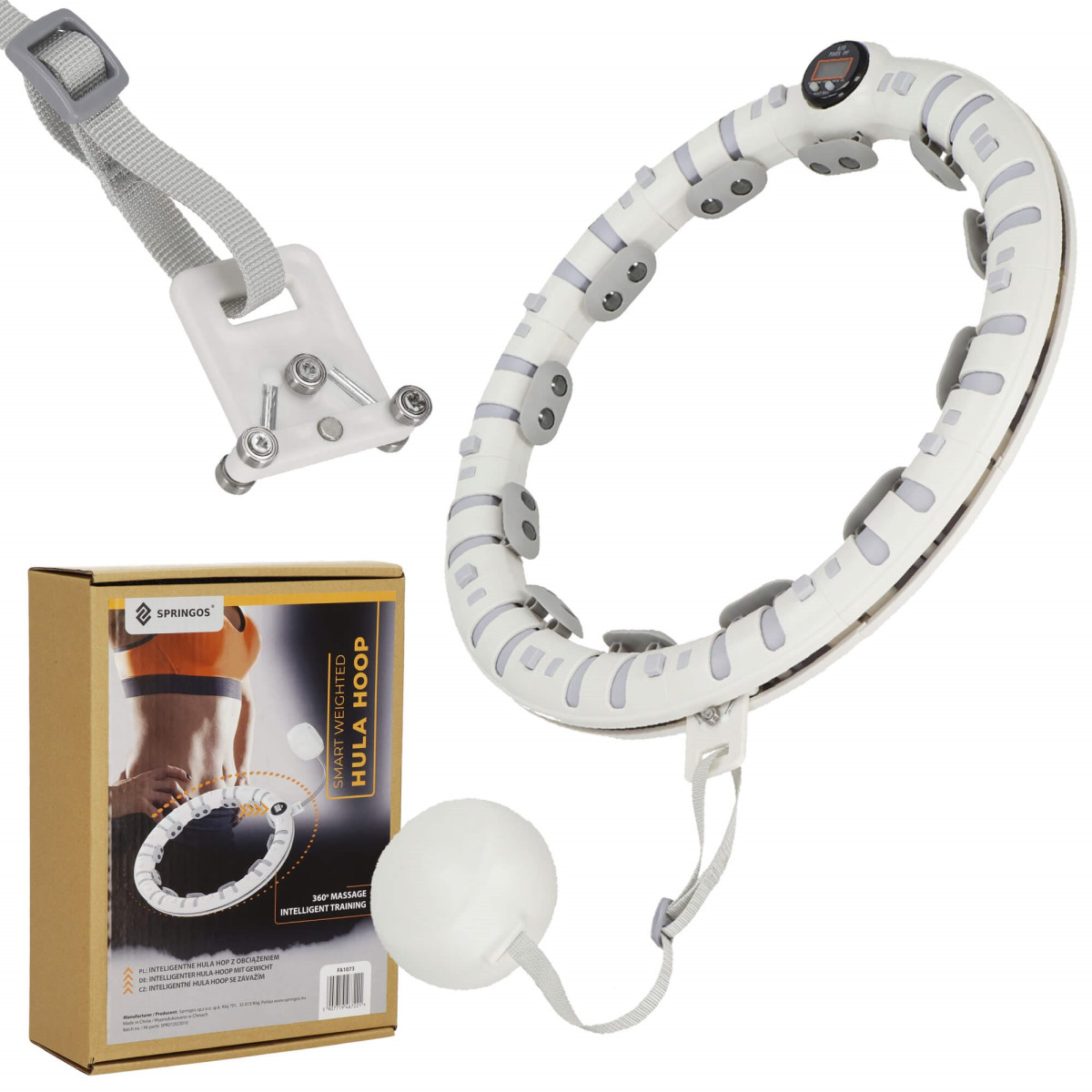 Hula hop Springos składane z wypustkami i licznikiem 38 cm biały ...