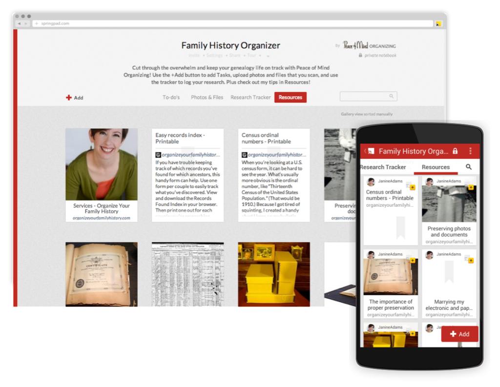 My new Family History Organizer notebook on Springpad - Organize Your ...