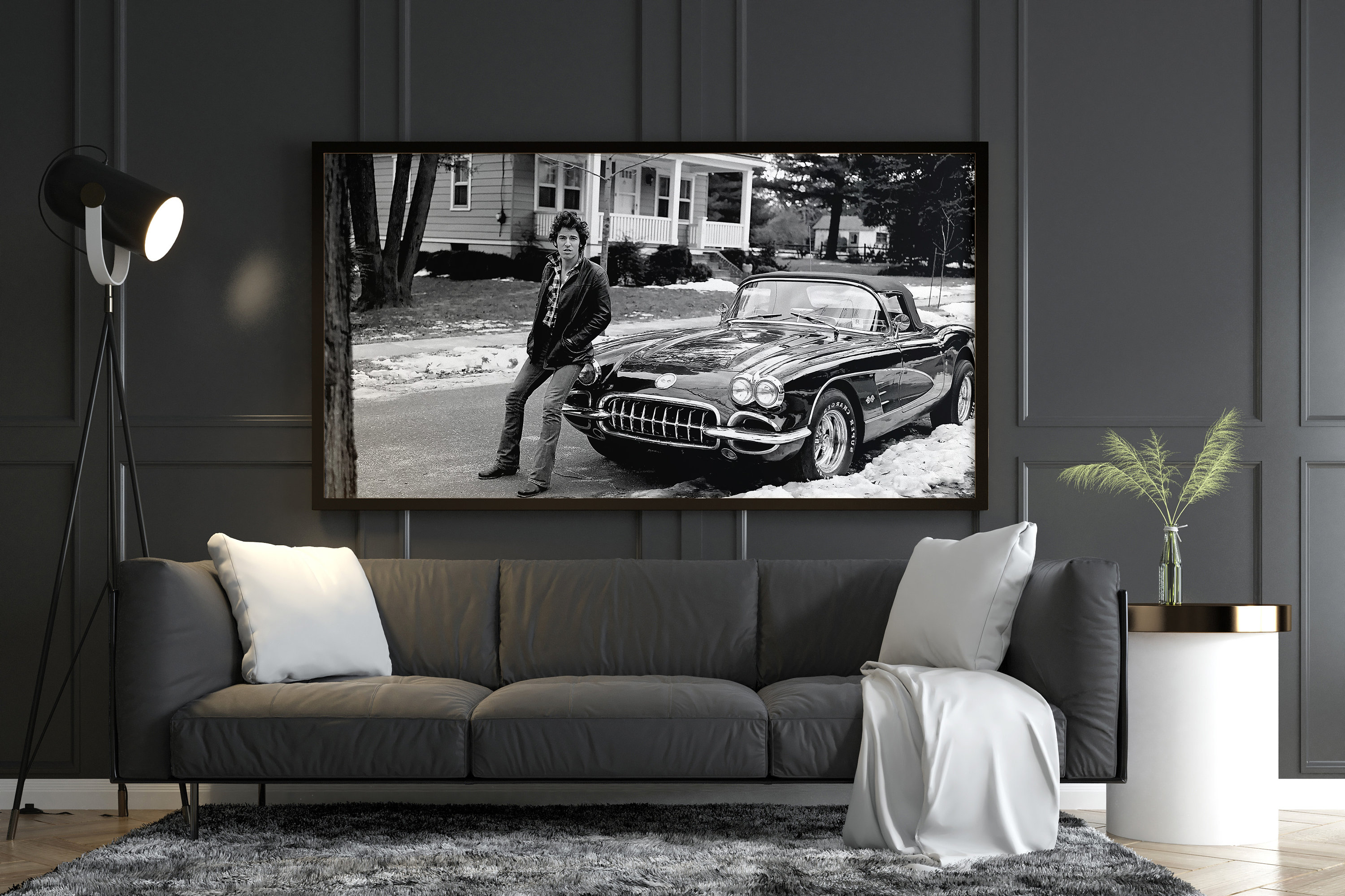 Bruce Springsteen in Classic Car Poster, Black and White, Vintage ...