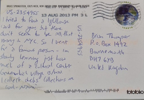 Bruce Springsteen, Colts Neck, New Jersey, Vintage Postcard Postmark 13 ...