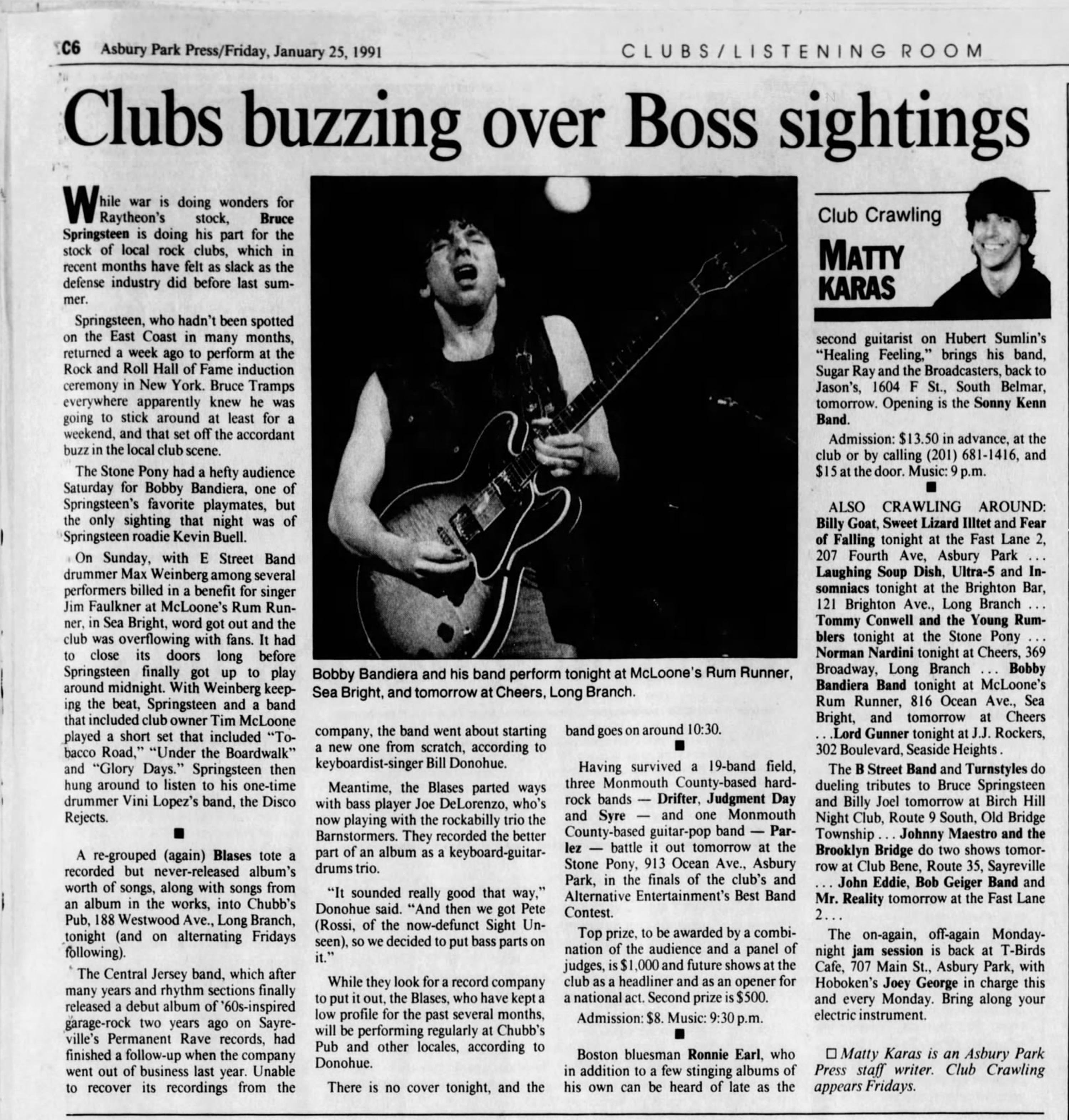 Jersey Shore clubs buzzing over Bruce Springsteen sightings (1991)