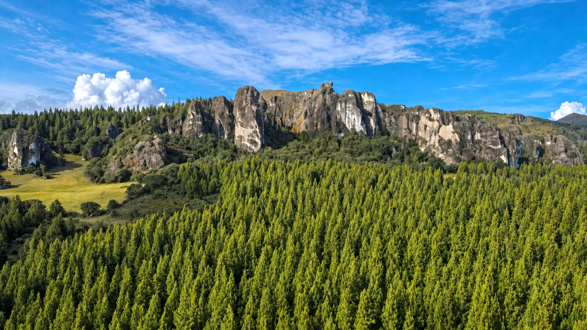 A massive rock formation that looks like a stone city