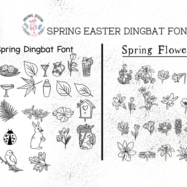 LSF Spring Doodle Font | Dingbat Font | Spring Clip Art - Etsy