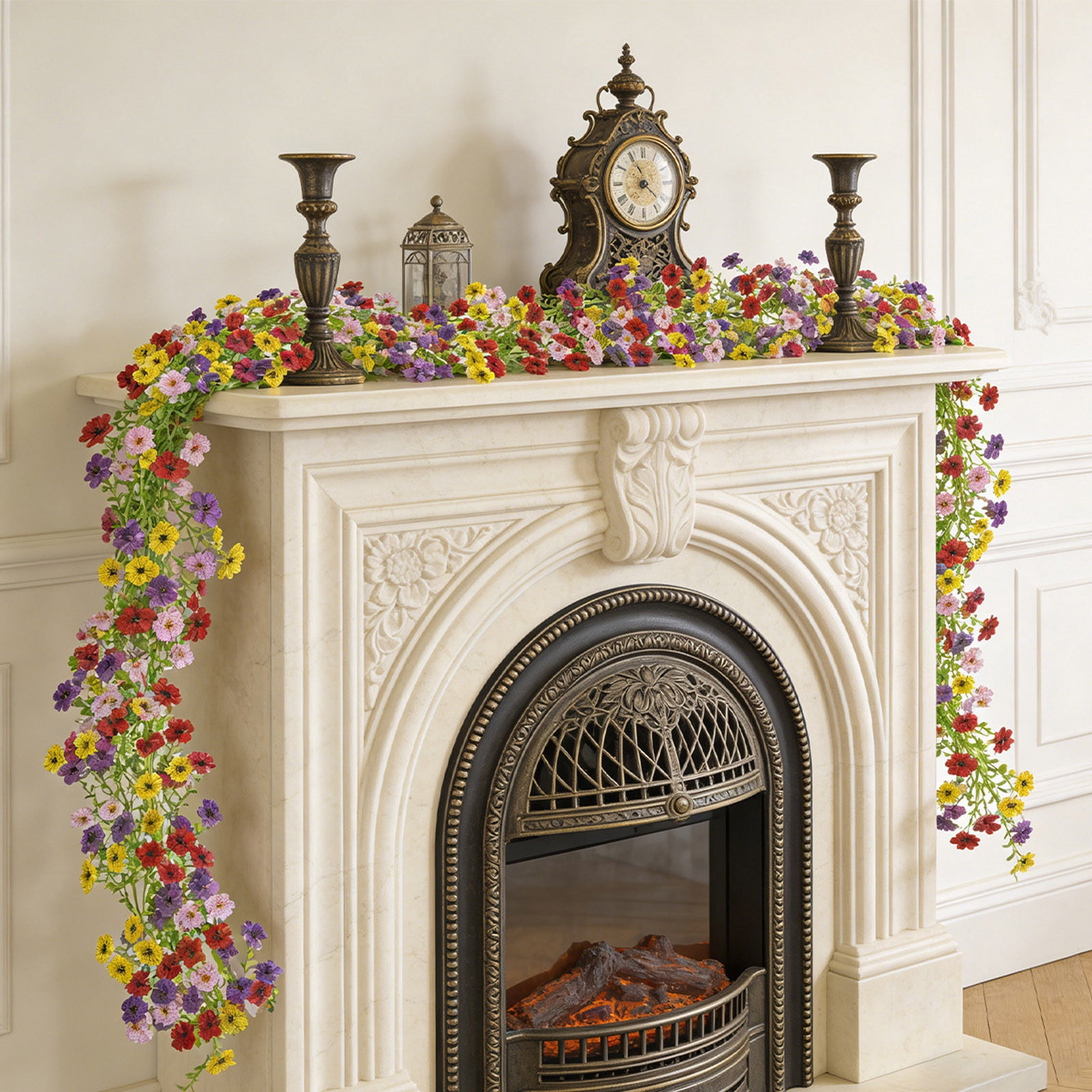 Amazon.com: Valery Madelyn Pre-Lit Spring Flower Garland for Mantle ...