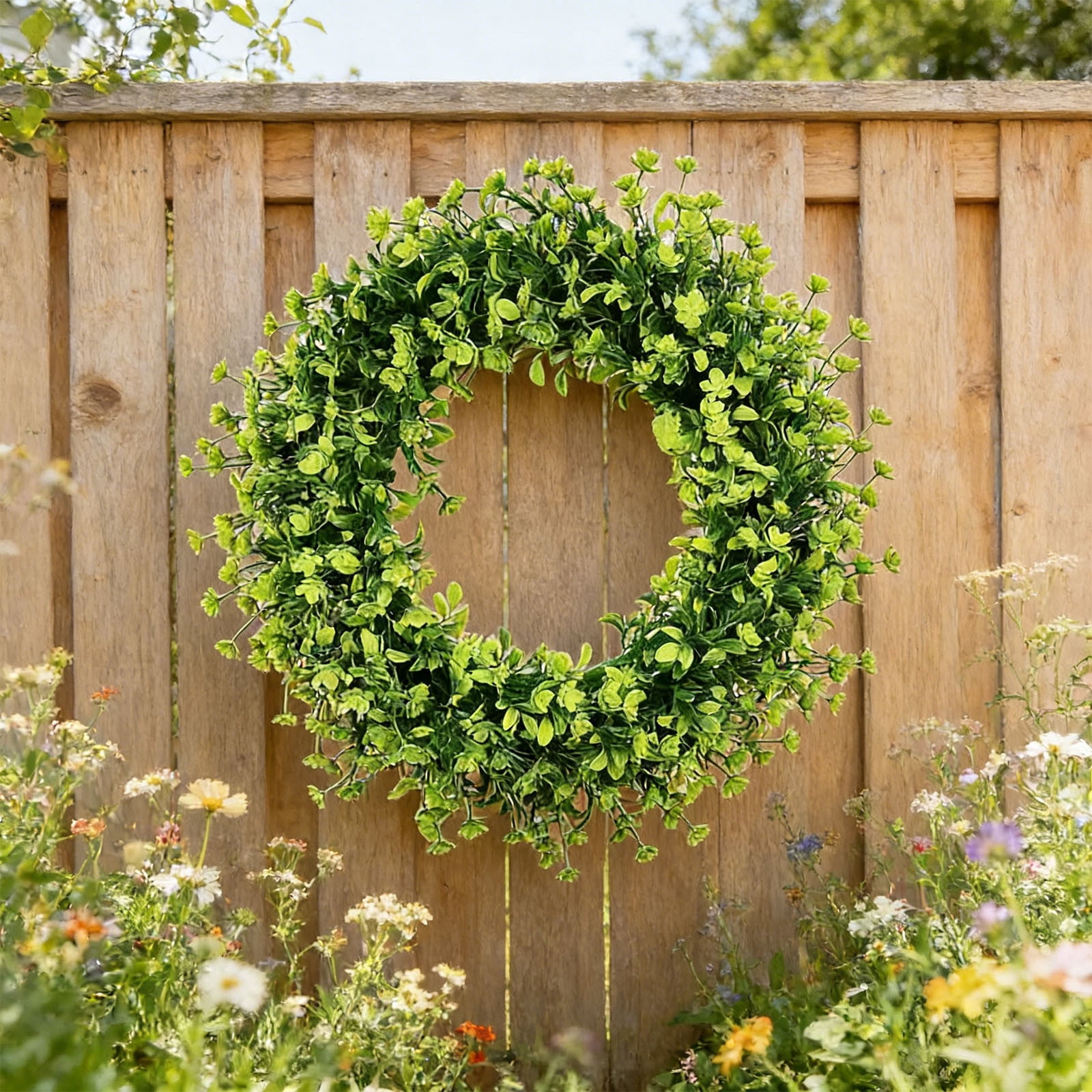 18.9in Square Boxwood Spring Wreath – Faux Greenery Garland for Front ...