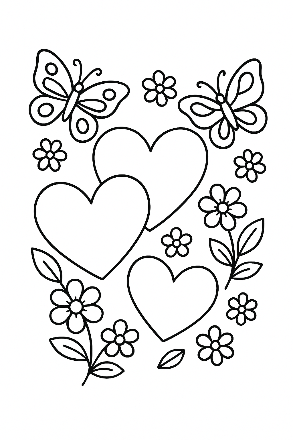 Springtime Hearts and Butterflies Coloring Page - Free Coloring Page ...