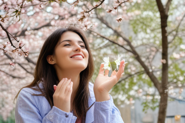 People enjoying spring seasons with floral background. It's spring time ...