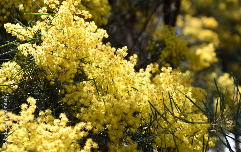 Image of Yellow wattle flowers in springtime - Austockphoto