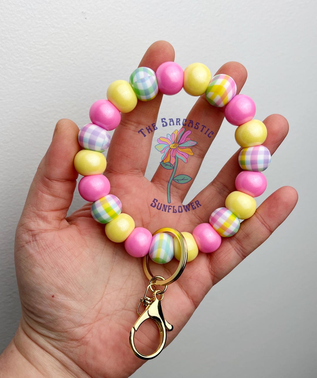 Spring Plaid Keychain Wristlet | Silicone Bead Wristlet | Bracelet ...