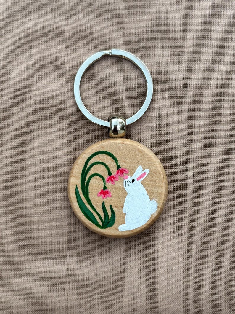 Cute Bunny Keychain Design. Spring Flowers Keychain