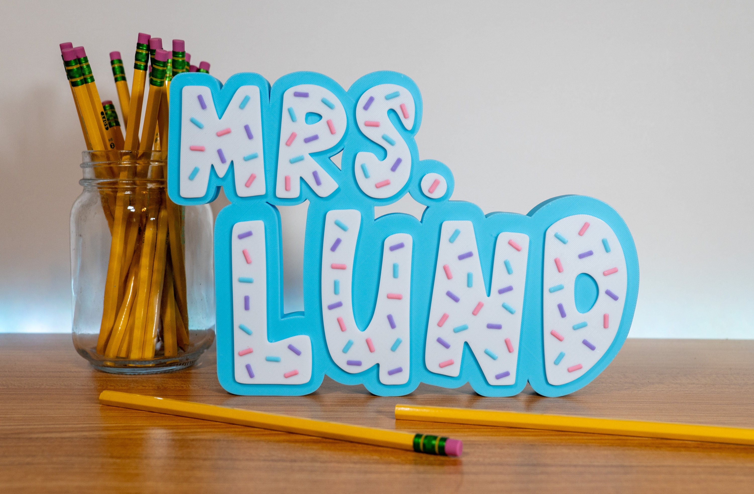 3D Sprinkles Name Plate - Custom Cupcake Name Sign - Purple Teacher ...