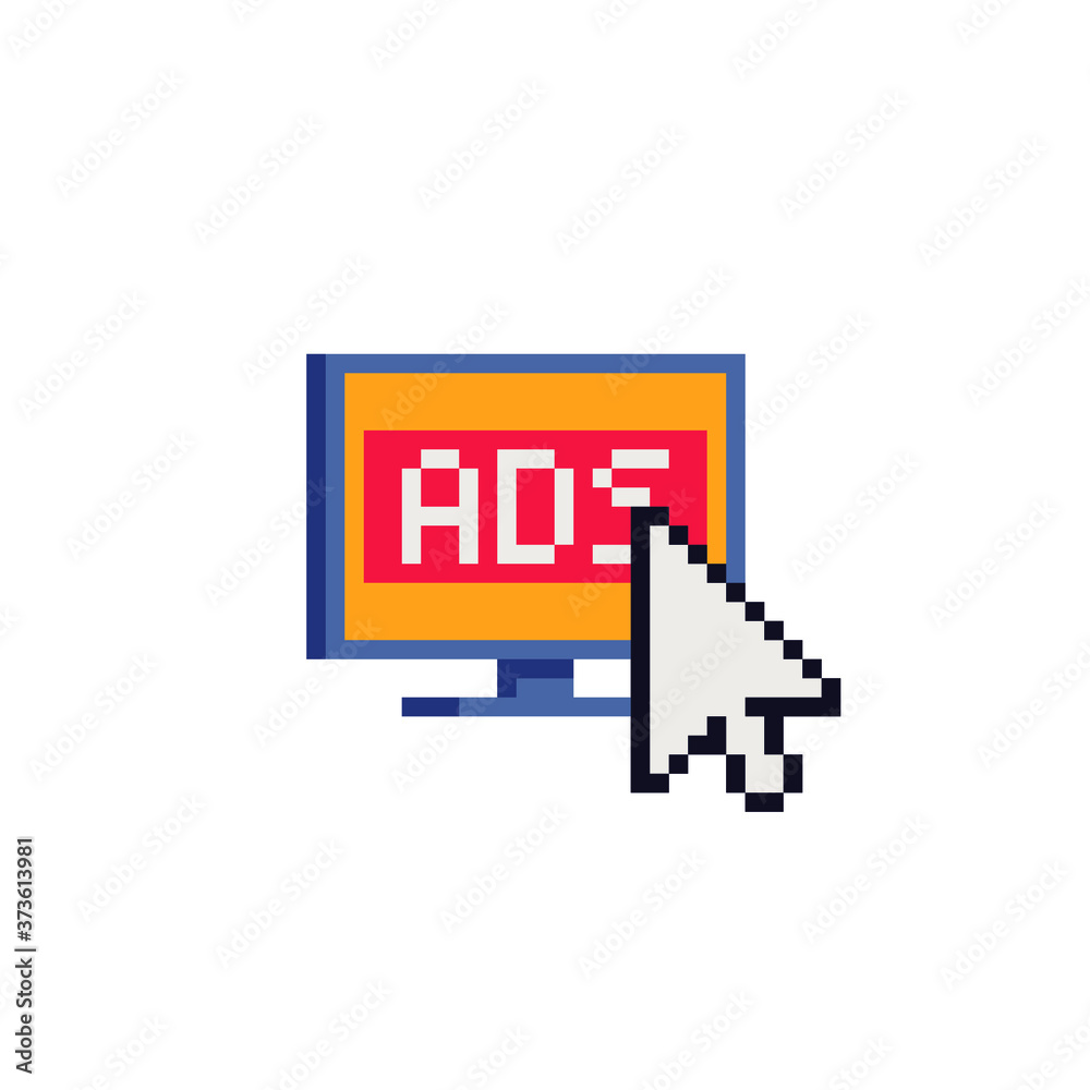 Computer flat style icon. Pixel art. Monitor, display, ps. 8-bit sprite ...