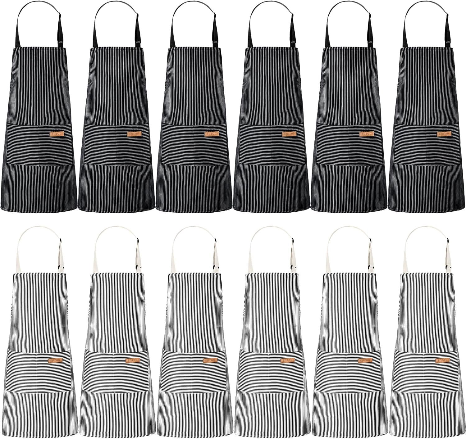 12 count Aprons for Women Men with Pockets Soft Adjustable Bib Stripe ...