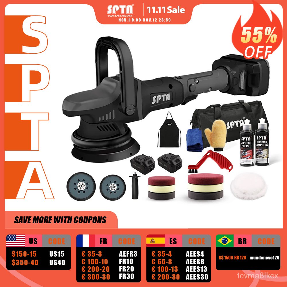 SPTA 고속 충전 무선 자동차 광택기, 듀얼 액션, 궤도 가변 속도 연마기, 4000mAh 배터리, 20V, 5 인치 ...