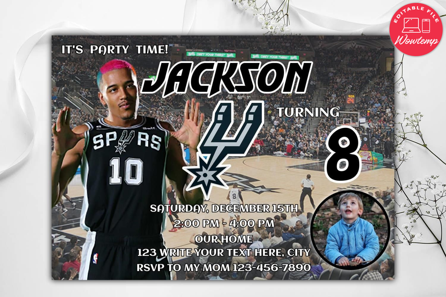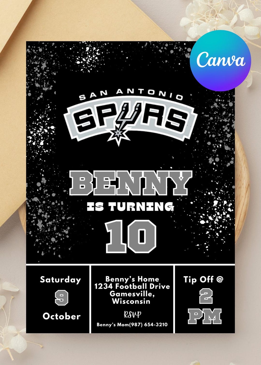 San Antonio Spurs Digital Birthday Invitation. Custom NBA Bas ...