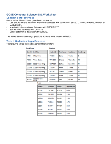 GCSE Computer Science - SQL Practice (AQA June 2023) | Teaching Resources