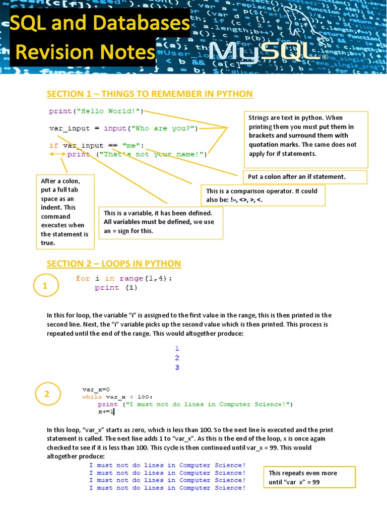 GCSE Computer Science SQL and Databases Revision Notes | PDF | Control ...