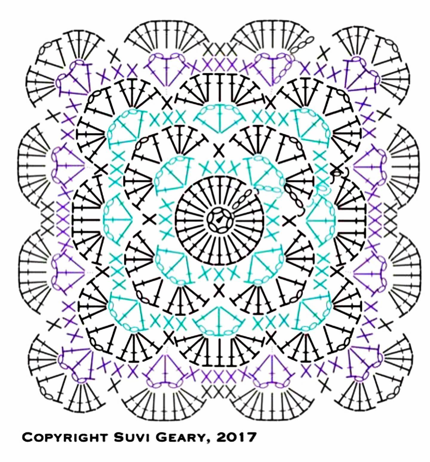 Crochet Granny Square Chart Pattern with Floral Designs and Detailed ...