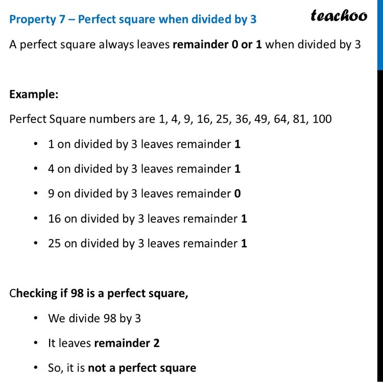Properties of Perfect Squares - Example (with Questions) - Teachoo