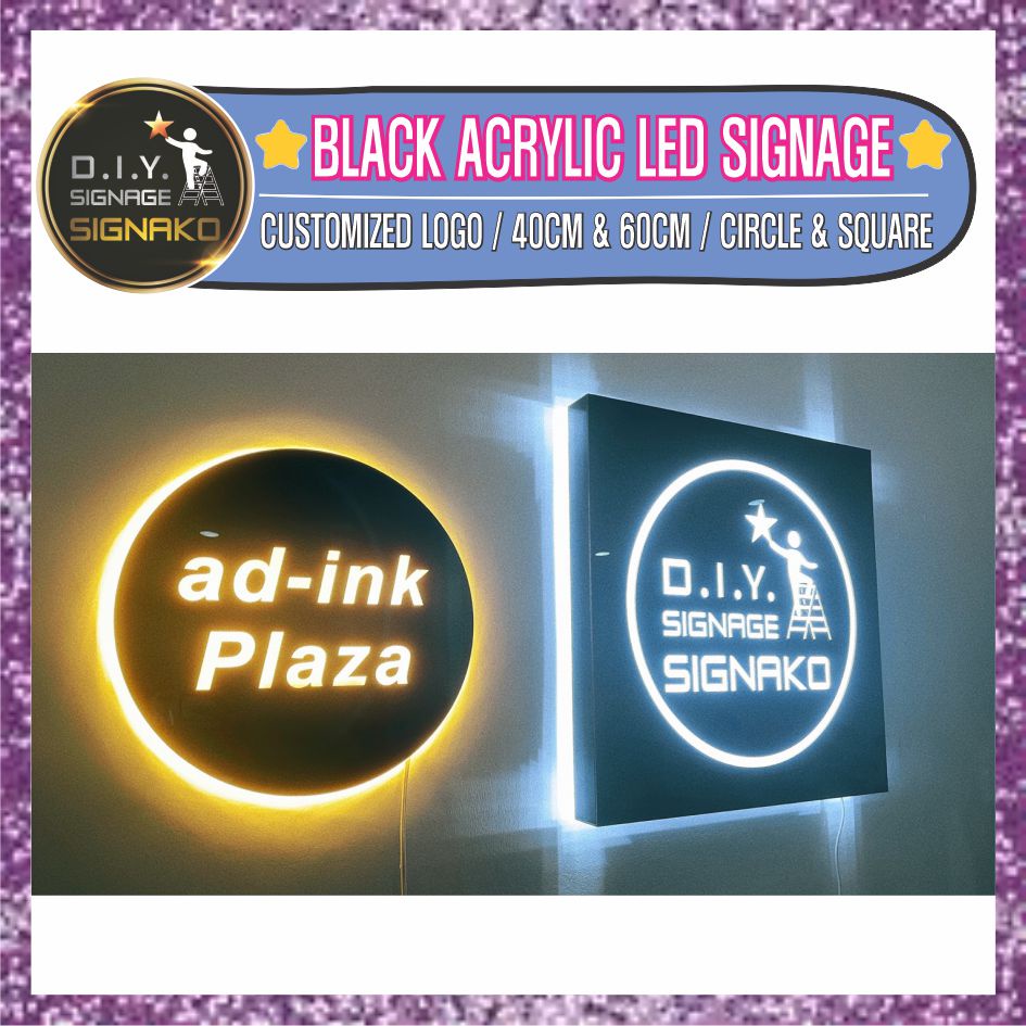 Customized Black Acrylic LED Light Signage / 40cm 60cm Circle Square ...