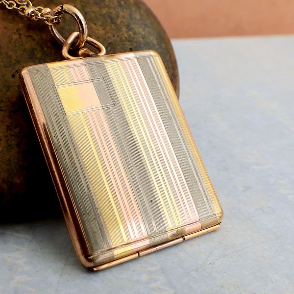 Vintage Mid-Century Tri-Gold Square Locket – The Vintage Jewellery Company