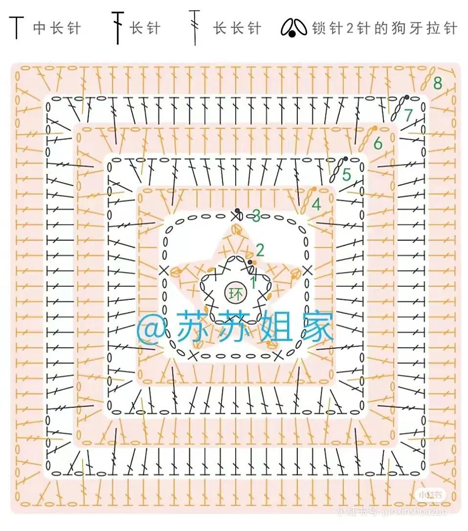 Crochet Orange Granny Square Flat Chart Pattern | HandmadeV