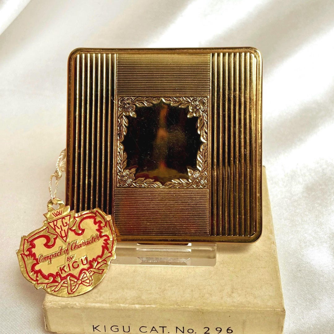 Vintage Kigu Compact. Square Powder Compact. Gold With Engine Turned ...