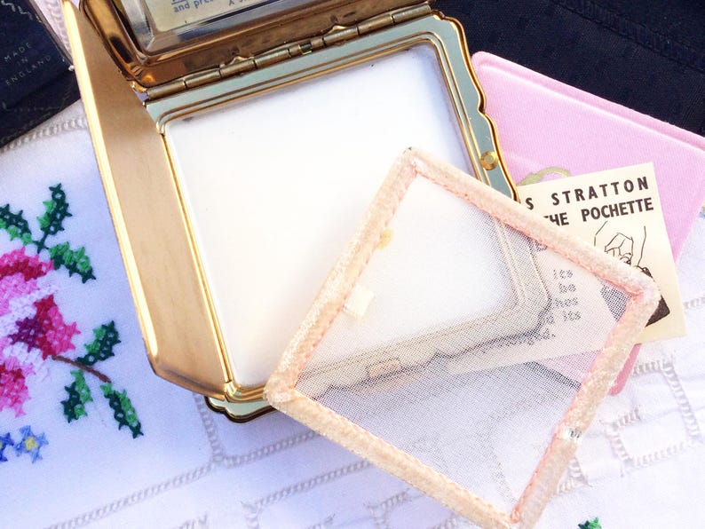 Vintage Stratton Small Square Powder Compact With Enamelled Cream Lid ...