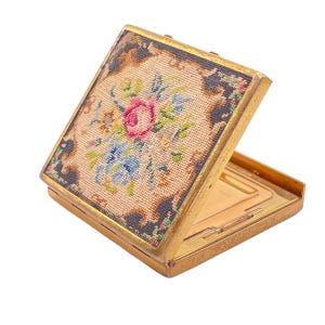 Art Deco Square Powder Compact Embroidered Vintage Needlepoint Black ...