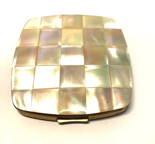 VINTAGE MOTHER OF Pearl Dainty Square Powder Compact Case By Melissa £ ...