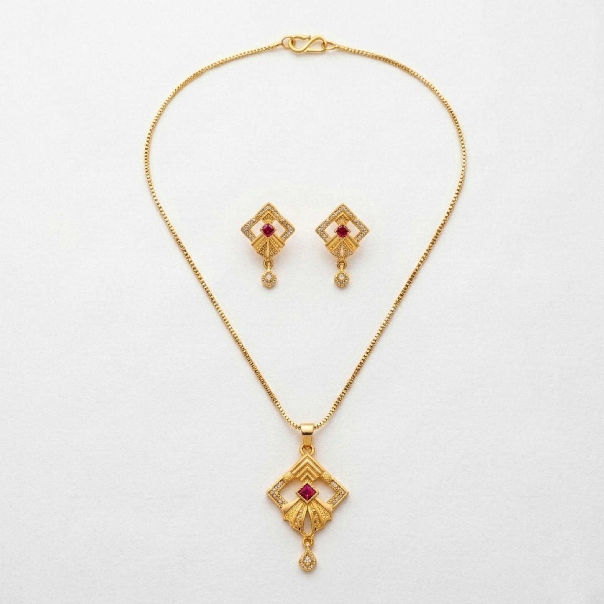 Micro Gold-Plated Luvia Luxury Ruby Red & White Stone Pendant with Ear