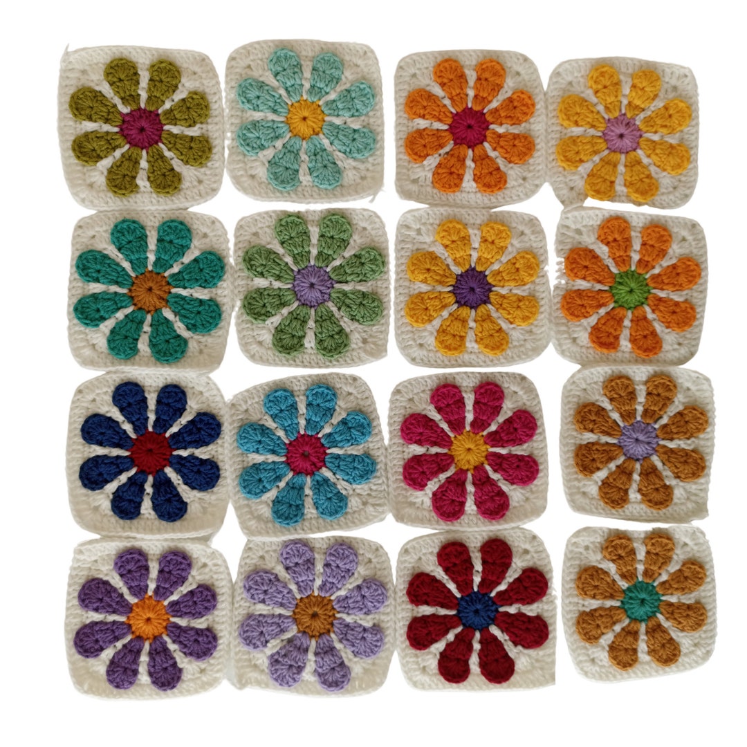 Daisy Granny Square Sets, Individual Floral Motifs, Crochet Multicolor ...